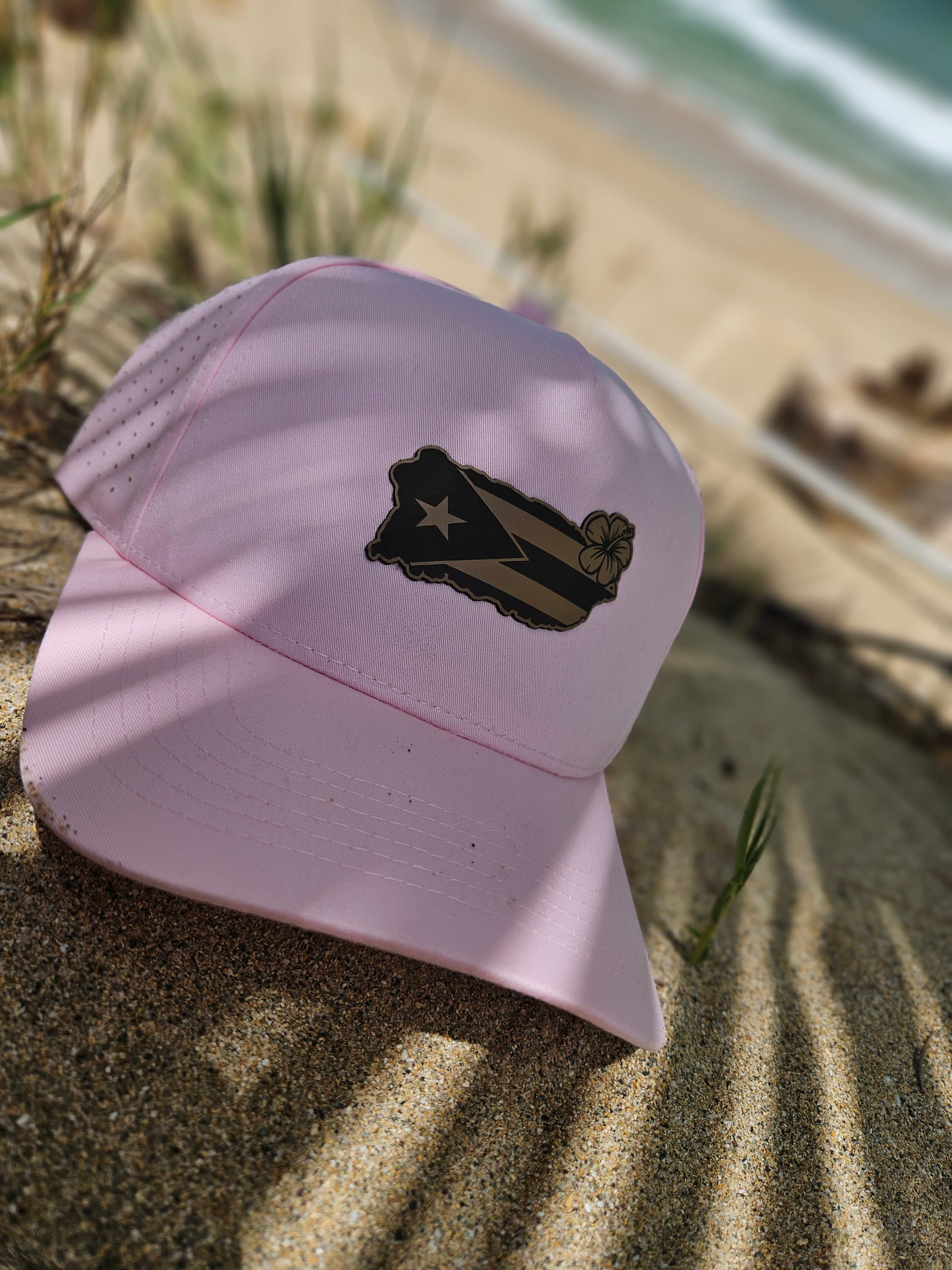 Gorra de tela impermeable color rosa. Ajustable. Abierta.Â
